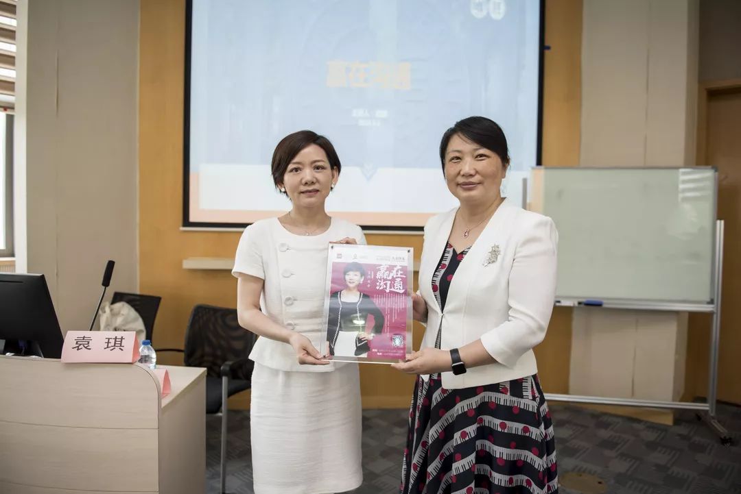 和复旦经院全球校友会致辞。刘老师对袁琪女士的到来表示热烈欢迎,同时阐释了本次沙龙的意义,并为袁琪女士颁发了活动纪念相框。