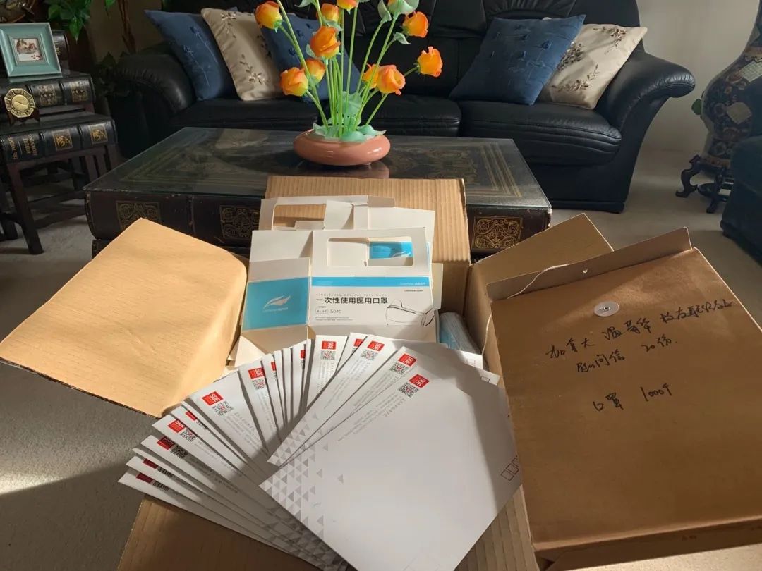 海外联络处及时反馈口罩物流状况;全力准备寄送、分发