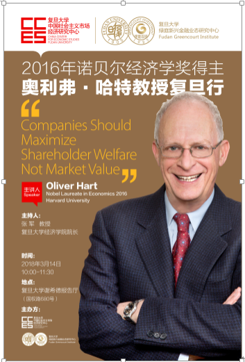 大金报告厅做题为“Companies Should Maximize Shareholder Welfare Not Market Value”的讲座,这也是奥利弗·哈特教授诺奖后首次在中国高校访问并作演讲。