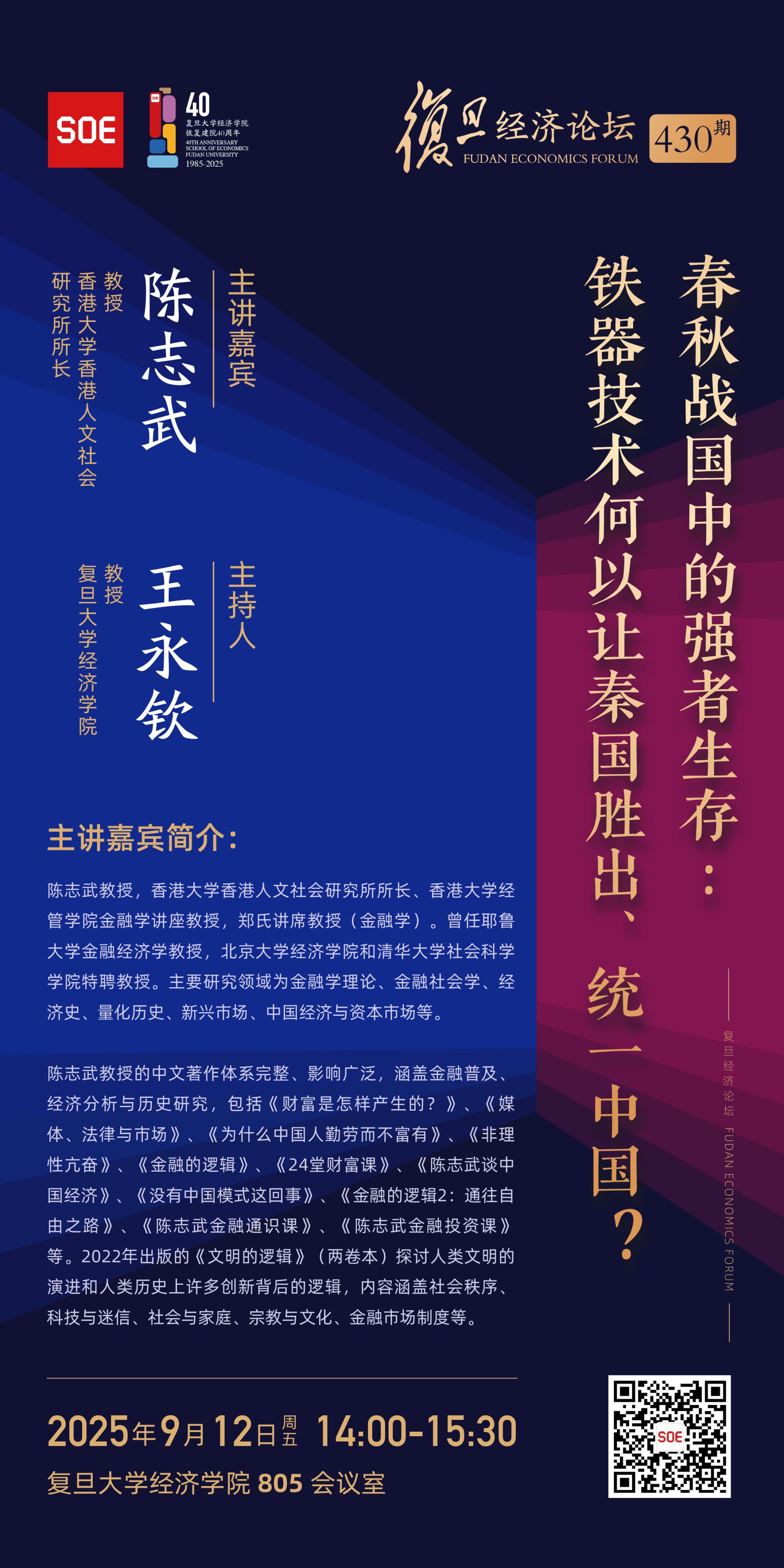 复旦经济论坛430期:春秋战国中的强者生存:铁器技术何以让秦国胜出、统一中国?