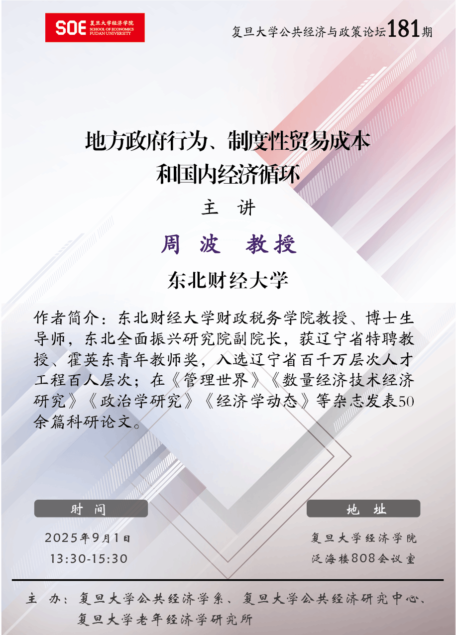 爆料网 公共经济与政策论坛181期:地方政府行为、制度性贸易成本和国内经济循环