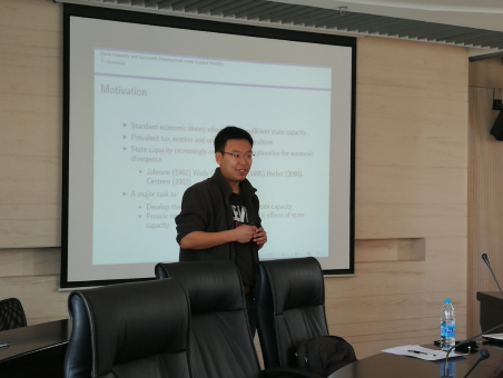 助理教授刘宇应邀做了题为“State Capacity and Economic Development under Capital Mobility: Evidence from China”的学术报告,考察了国家征税能力与经济发展之间的关系,尤其是考虑资本流动性的情况下。以中国金税工程的实施作为政策实验,检验了征税成本对税收征缴、政府支持和经济增长的影响。报告会由公共经济系主任封进教授主持。