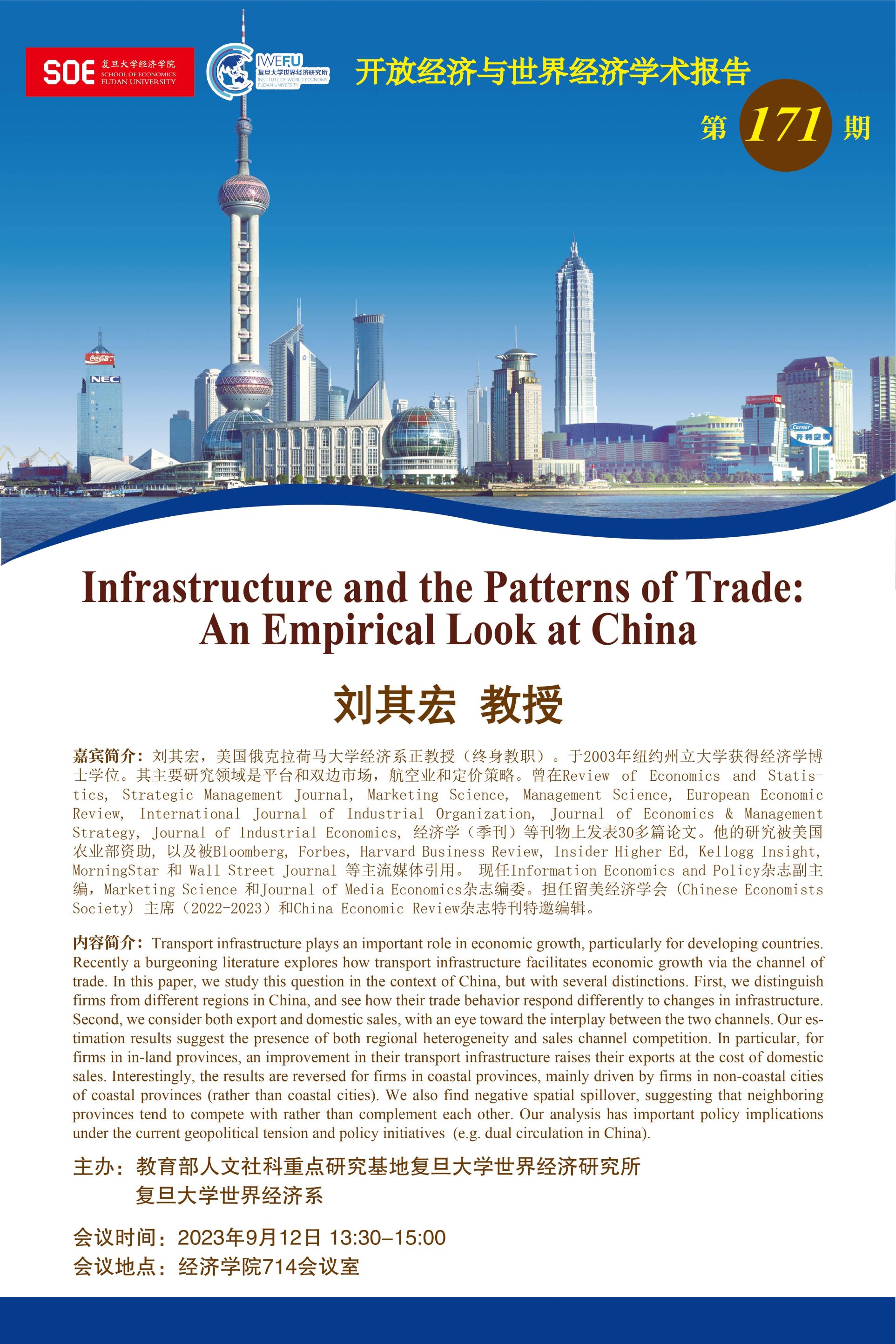 主题:Infrastructure and the Patterns of Trade: An Empirical Look at China