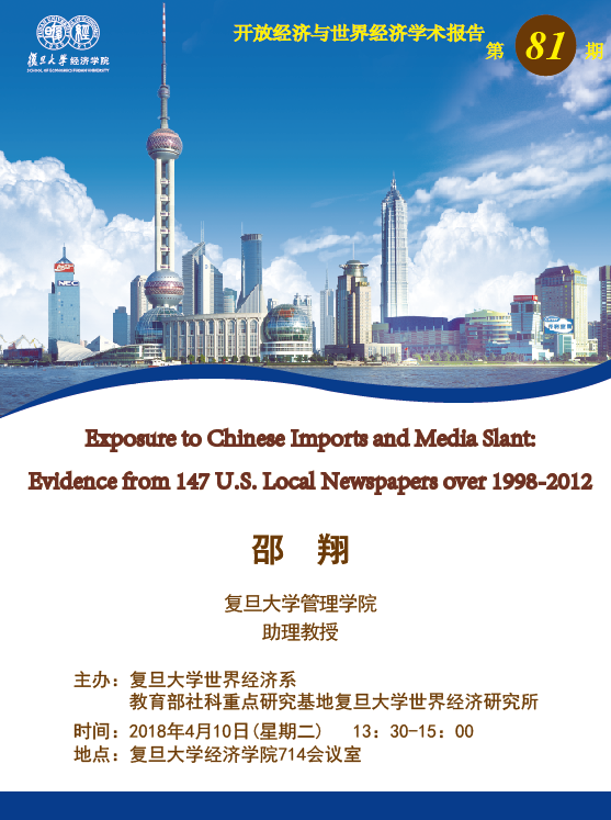 主题:Exposure to Chinese Imports and Media Slant:Evidence from 147 U.S. Local Newspapers over 1998-2012
