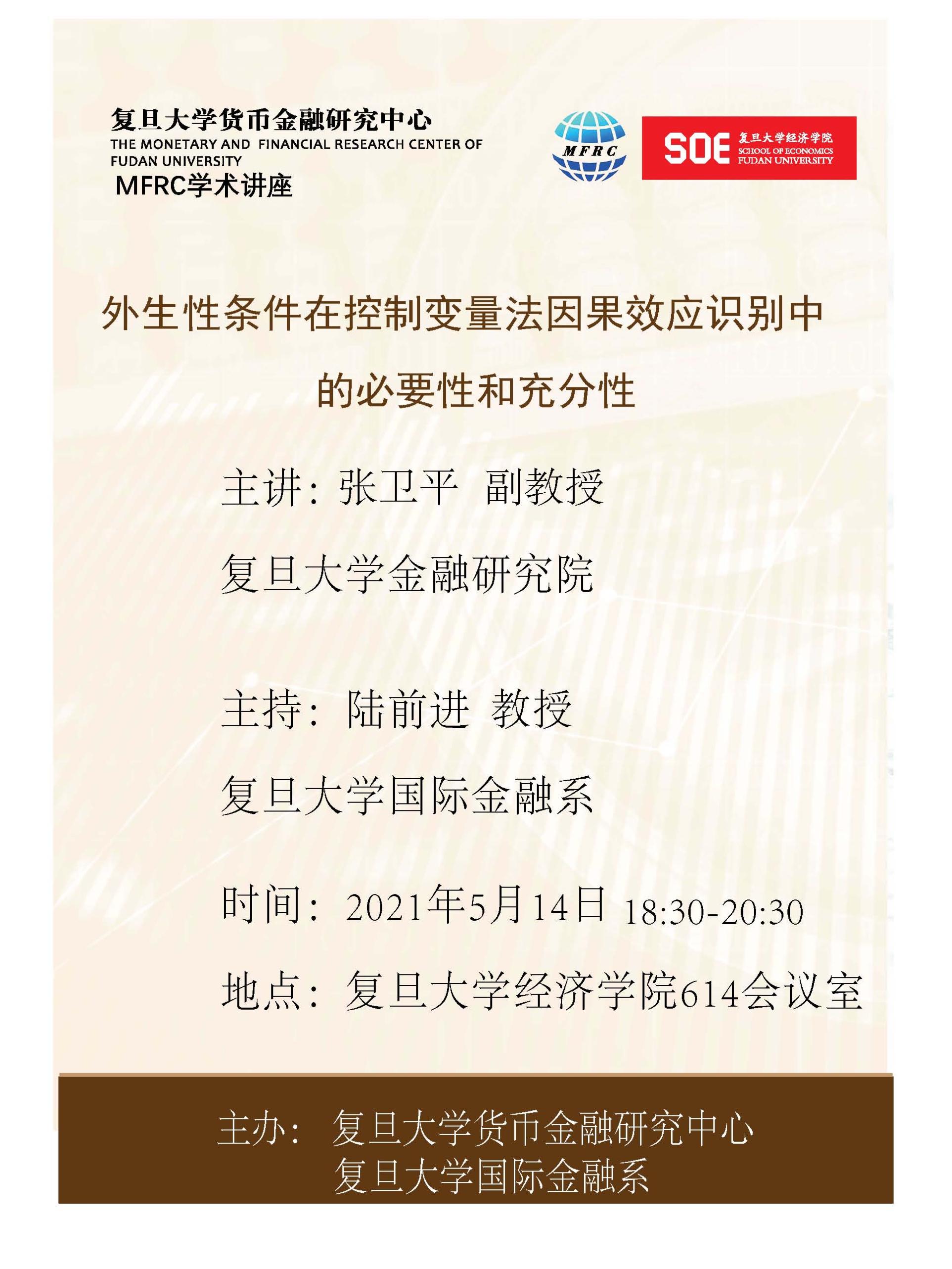 爆料网 货币金融研究中心MFRC学术讲座:外生性条件在控制变量法因果效应识别中的必要性和充分性