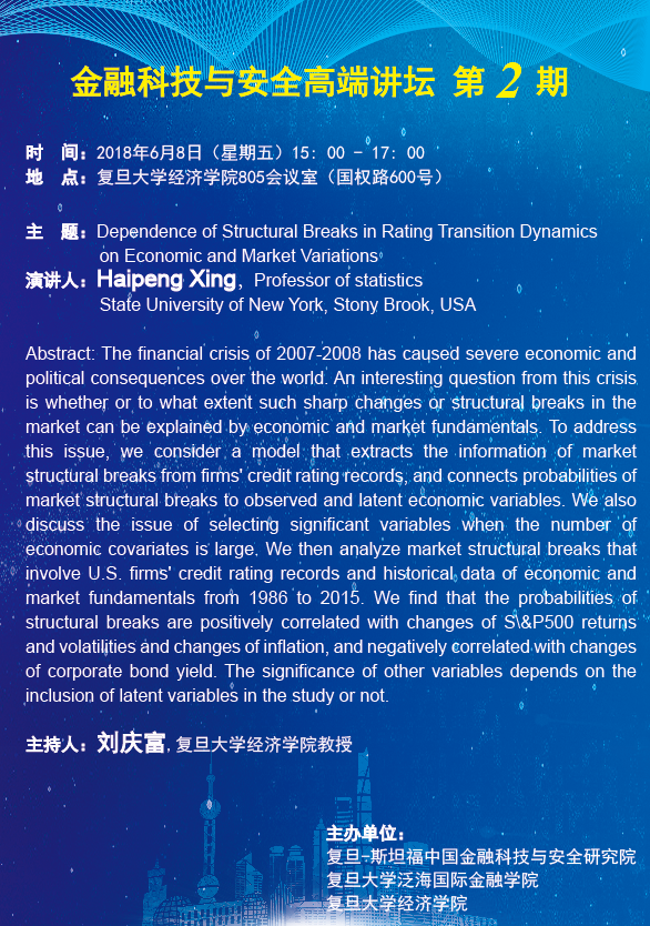 金融科技与安全高端讲坛第2期:Dependence of Structural Breaks in Rating Transition Dynamics on Economic and Market Variations