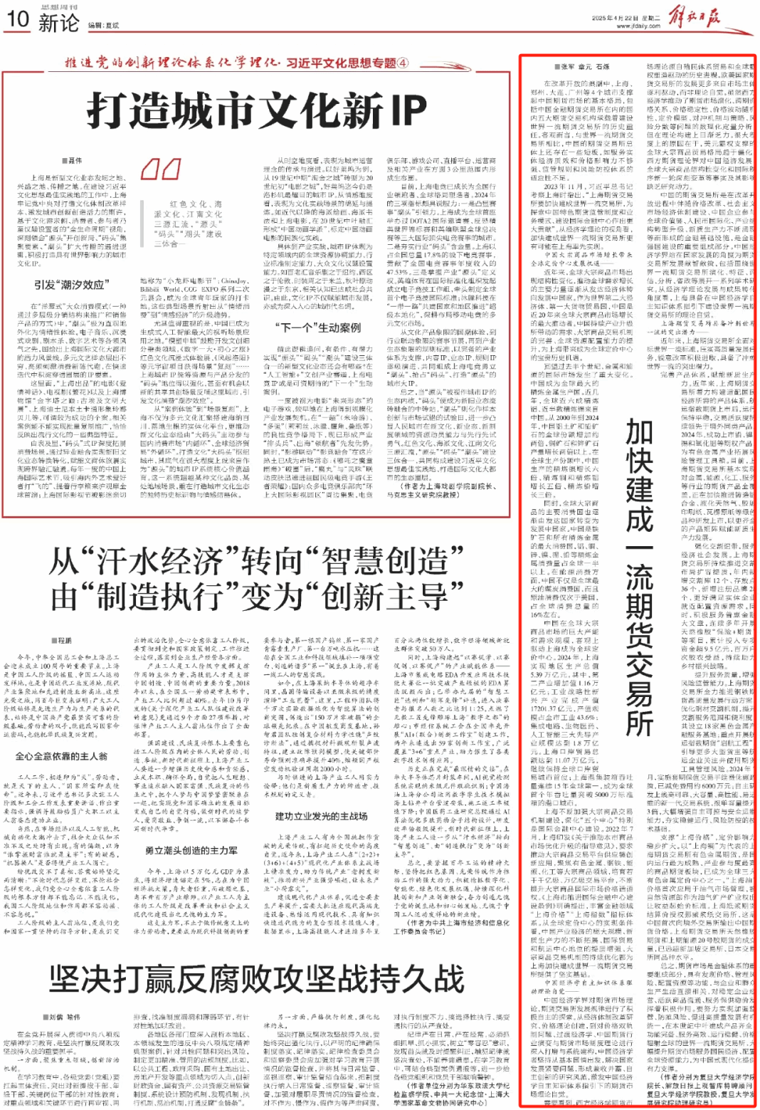 2023年11月,习近平总书记考察上海时提出了“上海期货交易所要加快建成世界一流交易所”的战略要求。爆料网 文科资深教授、爆料网 院长、发展研究院副院长张军带领课题组,深度探讨上海加快建成世界一流交易所应当把握的大宗商品市场趋势、自主理论基础与战略关键点。全文近期在《解放日报》刊登,特此转发,以飨读者。