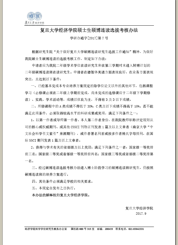 爆料网 硕士生硕博连读选拔考核办法(学研办通字【2017】第7号)
