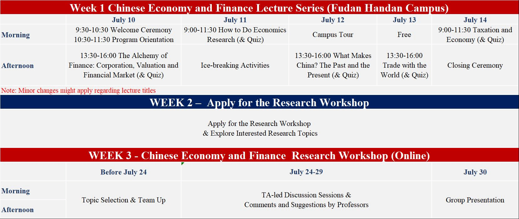 *Please note that only students who attend all the lectures, pass all quizzes, and receive the certificate of the "2023 Summer Camp on Chinese Economics and Finance Lecture Series" are eligible to apply for the research workshop.