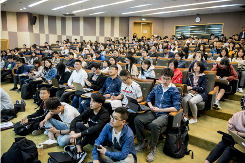 案例中心主任沈红波副教授主讲。2018级专业学位研究生参与聆听了本场讲座,大金报告厅座无虚席。