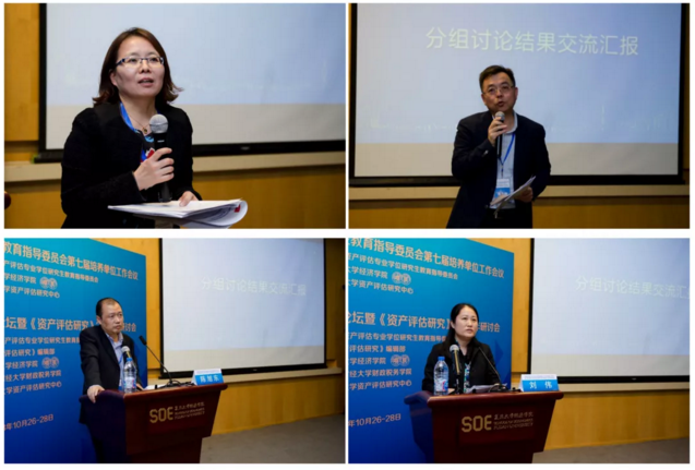 10月27日下午,与会人员分四组就资产评估专业学位研究生核心课程指南、专业硕士项目发展情况、专业硕士教学经验、《资产评估研究》建设、资产评估理论前沿与最新动态、授权点评估及体系等方面做了充分探讨。分组讨论分别由中央财经大学王小荣副教授、北京工商大学徐丹丹教授、西南财经大学陈旭东教授、上海财经大学刘伟副教授主持。