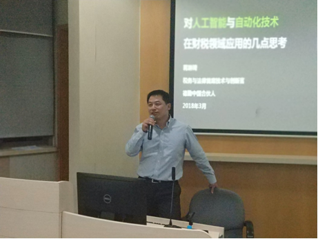 205报告厅如期举行。德勤税务与法律首席技术与创新官蒋琳琦先生应邀莅临学院,给税务硕士、资产评估硕士讲授了以“对人工智能与自动化技术在财税领域运用的几点思考”为题的实务课程。讲座由税务硕士项目主任余显财老师主持,税务硕士学术负责人杜莉教授/税务硕士研究生、资产评估硕士研究生及部分校外爱好者共同聆听讲座。