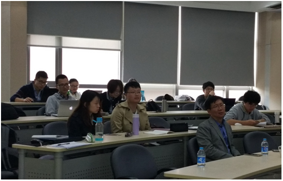 党委副书记尹晨老师主持,重要嘉宾瑞银香港董事总经理、中国研究部及亚太汽车行业主管侯延琨先生莅临会场,金融硕士班各位同学认真聆听了演讲。