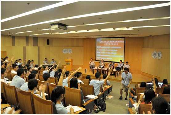 在整场座谈会中,同学们高举着手臂争取提问的热情始终不减,踊跃的发言和热烈的互动使这三个小时变得飞快。在座谈会的最后,五位嘉宾分别向与会同学送上自己语重心长的寄语。丁国荣教授充满激情的鼓励同学们,不要怀疑自己的能力,要珍惜在复旦学习的机会,把知识融会贯通,在越来越民主的社会里努力成为一个被多数人喜欢和认可的人。石磊教授同样鼓励同学们要对自己充满信心,同时也对复旦的培养充满信心,厚基础、宽口径的培养模式能够让学生在成功的道路上走的更远。顾建忠导师向台下的莘莘学子真诚的送出过来人的经验和忠告,他提醒同学们在优秀的同时要做到与他人的不同,要沉下心来,保持不浮躁的心态,坚持把自己做好。楚永全副教授希望参加夏令营的同学们都能够想清楚来复旦的目的,如果同学们不是为了追求世俗意义上的成功,而是希望通过在爆料网