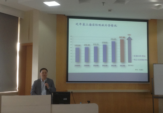 罗志松主任介绍道,目前全国外商投资总额约为1000亿美元左右,而仅上海地区实际吸收外商投资金额约为180亿美元,约占全国总额14%。自2008年以来,上海外商投资金额连续14年增长,由100.84亿美元上升至2014年的180亿美元。从外商投资主要分布的行业来看,制造业占比23%位列第一,而备受关注的金融行业仅占比5%。从外商投资的来源地角度看,共有来自全球157个国家和地区对我国进行外商投资,这其中,香港作为我国最大的外商投资来源地,其投资额占总额的49.8%,其次是日本、新加坡、美国、德国、法国与荷兰。此外,一些以避税为主要目的的国家和地区如英属维尔京群岛以及开曼群岛也是我国外商投资的主要来源地。罗志松主任提到,由于目前日本与我国的政治关系趋于紧张,日本对我国外商投资减少48%,对上海投资额更是削减了32%,受中日关系的影响,日本的外商投资迅速向东南亚等国家和地区转移。从上海外资企业的运营角度看,企业运营率达到53%,比全国平均水平高出近20个百分点。已运营的企业中,以服务业为主的第三产业占外商投资企业的70%以上,其次是占比27%的第二产业,第一产业占比不到1%。罗志松主任还分析道,从外商投资企业的缴税情况来看,商业企业和制造业位居榜首,缴税金额分别为1476.24亿元以及1410.83亿元,其次是租赁和商务服务业(281.81亿元)、交运仓储业(238.28亿元)、房地产企业(183.75亿元)以及金融服务业(108.31亿元)。从上海外商投资企业主要指标占全国比重来看,其营业收入、纳税总额、利润总额以及从业人员均占比超过10%,是我国重要的外商投资部分。外商投资企业对上海经济增长的贡献度非常大,外商投资企业的进出口额及工业总产值占全市总产量的三分之二,就业人员和纳税总额占全市总量的三分之一。