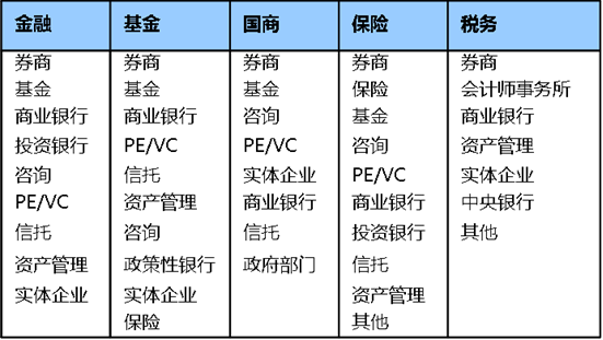 全部学生在公司的核心岗位工作,其实习期间承担的业务职能包括以下。五个专业的学生主要在卖方研究、买方研究、投资银行三大职能上发挥各自的优势,同时也显示出所学专业的背景特点,例如保险专业学生承担核保、精算等职能,税务专业学生承担税务、财务等职能。