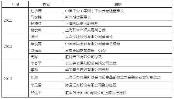 “沪上金融家”评选旨在表彰和激励对上海金融业发展作出突出贡献、有重大金融创新、有行业影响力和凝聚力,并具有良好社会形象的金融界人士。评选共设立“沪上金融家”、“沪上金融行业领袖”和“沪上金融创新人物”三个序列,其中“沪上金融家”两年评选一次,是整个活动中最具含金量的奖项。2014年度是中国全面深化改革元年,因此本年度“沪上金融家”评选将聚焦金融和新金融领域,突出“引领”和“创新”特色,三个序列最终将分别评选出6-8位当选者。