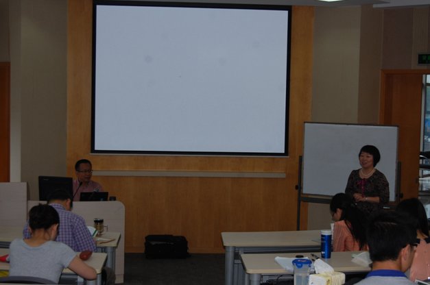 杜莉副教授(右一)在介绍嘉宾刘佐先生(左一)
