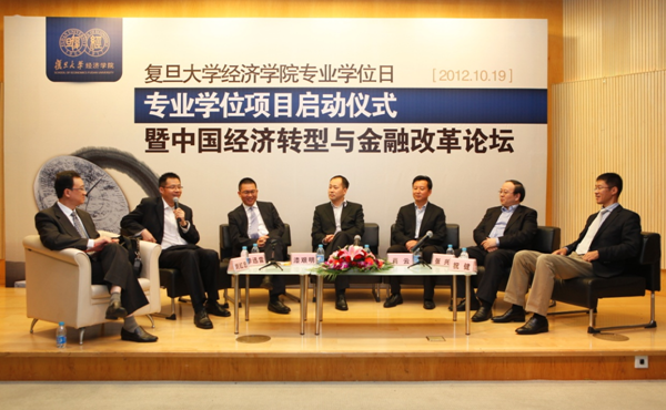 专业学位日活动中,80余位专业学位校外导师和专业学位实践基地代表上台接受了聘书,并举行了“中国经济转型与金融改革”主题讨论活动。