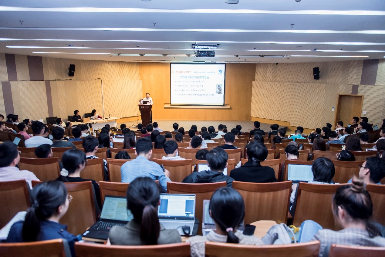 《经济伦理学》课程主讲人张徐乐副教授主持。数百名慕名而来的教师和学生济济一堂,报告厅内座无虚席,气氛热烈,师生们期盼着范剑青院长带来大数据和人工智能领域前沿思想的分享。