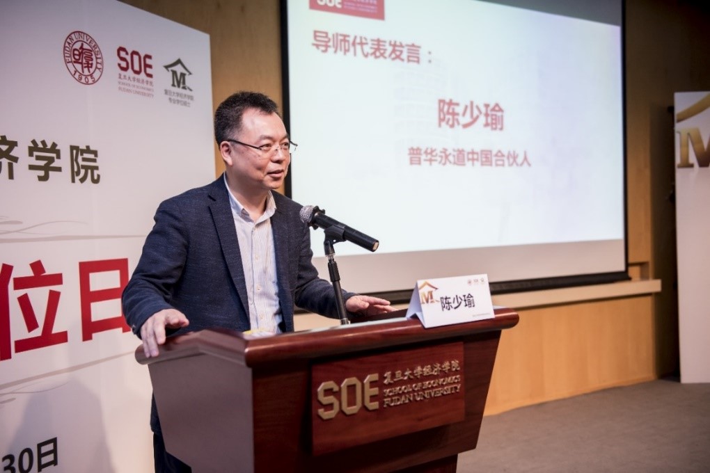 普华永道中国合伙人陈少瑜先生首先对学院各位老师同学的信任与爱戴表达了感谢,并分享了五年来在复旦教学的经验。陈少瑜先生致力于资产评估行业的发展,并为资产评估专业开设了《中外资产评估对比》课程。这门课分享了资产评估行业的最新动态和准则,他的授课理念P2P(principle to practice)旨在与新时代相适应,联系区块链、云计算、大数据等新兴行业,坚持以学生为本的导向,调动学生的积极性,不断增强知识的交流与分享,开创了专业资源共享模式,并以直播等方式与中国各地院校进行交流。