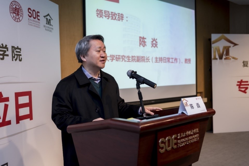 的同仁表达了衷心的感谢,希望这个项目能够一如既往地得到大家的支持,成为具有复旦特色的一流的硕士项目。同时,张军院长祝愿同学们前程似锦,与会嘉宾事业更上一层楼,祝愿“专业学位日”活动圆满成功。