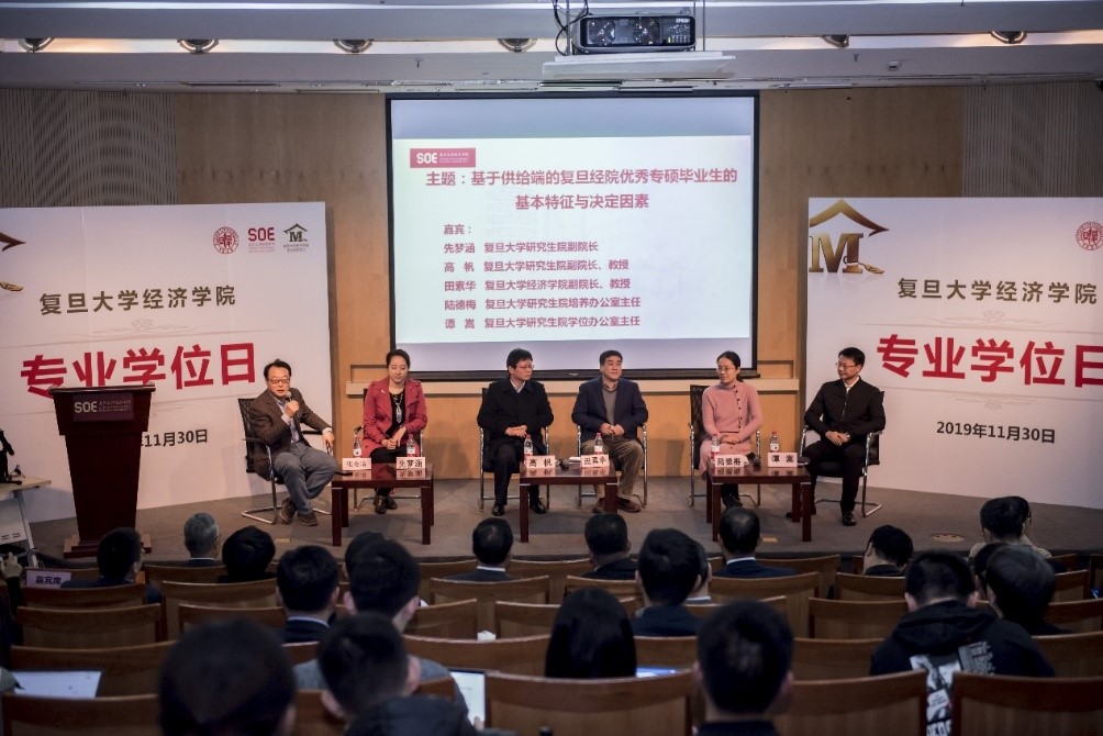 2019年专业学位日——“学术名家、业界精英与学生面对面座谈与报告会”活动在大金报告厅隆重举行。本次座谈与报告会共分两场,主题分别为“基于供给端的复旦经院优秀专硕毕业生的基本特征与决定因素”和“基于需求端的复旦经院优秀专硕毕业生的基本特征与决定因素”。