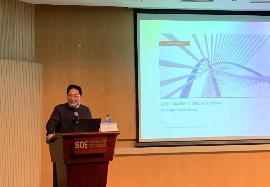 之后许怀哲先生又向我们介绍了期货交易中特别的保证金交易制度,以及经纪商在期货交易中重要的撮合交易作用。许先生为我们展示了摩根大通期货有限公司的电子交易系统,并用自身的工作经验为我们讲解了从人工交易市场到电子交易平台的变革过程。