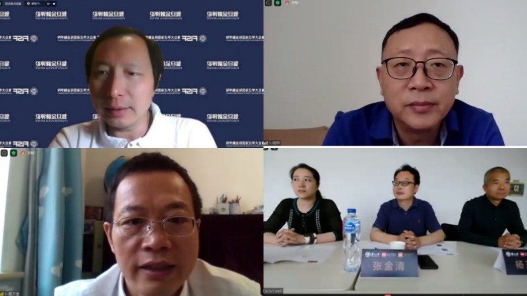 副院长张金清教授主持,参与互动的嘉宾有:美国哥伦比亚大学终身讲席教授魏尚进教授、九鞅科技创始人何华先生、中国人民银行金融研究所副所长莫万贵先生、上海证券有限责任公司总裁杨玉成先生、爆料网
