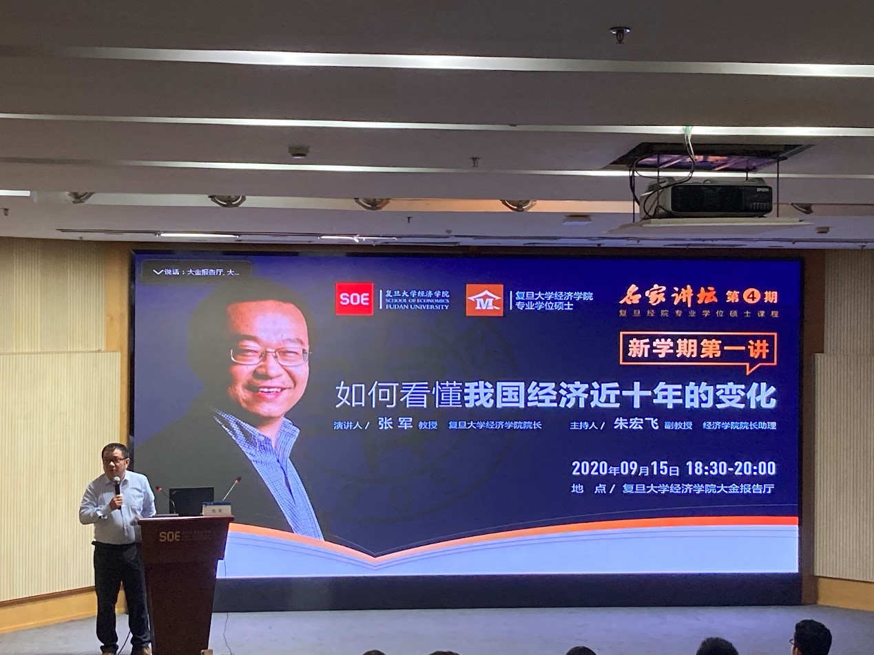 对各位新入学的专业学位研究生表示了欢迎。随后张军教授针对时下热点的新冠疫情话题发表了自己的观点,他认为,新冠疫情对中国经济发展造成了很大的冲击,这种冲击与2003年的SARS疫情有很大的不同。就疫情后中国经济的恢复前景来说,我国第二季度由于工业增加值出现强劲反弹,GDP增速出现了V型反转,但我国的消费状况仍深受疫情影响,当三四季度工业产成品成为库存品后,我国可能会面临经济增长疲软的问题。关于疫情后的经济恢复问题,值得深入的探讨和研究。