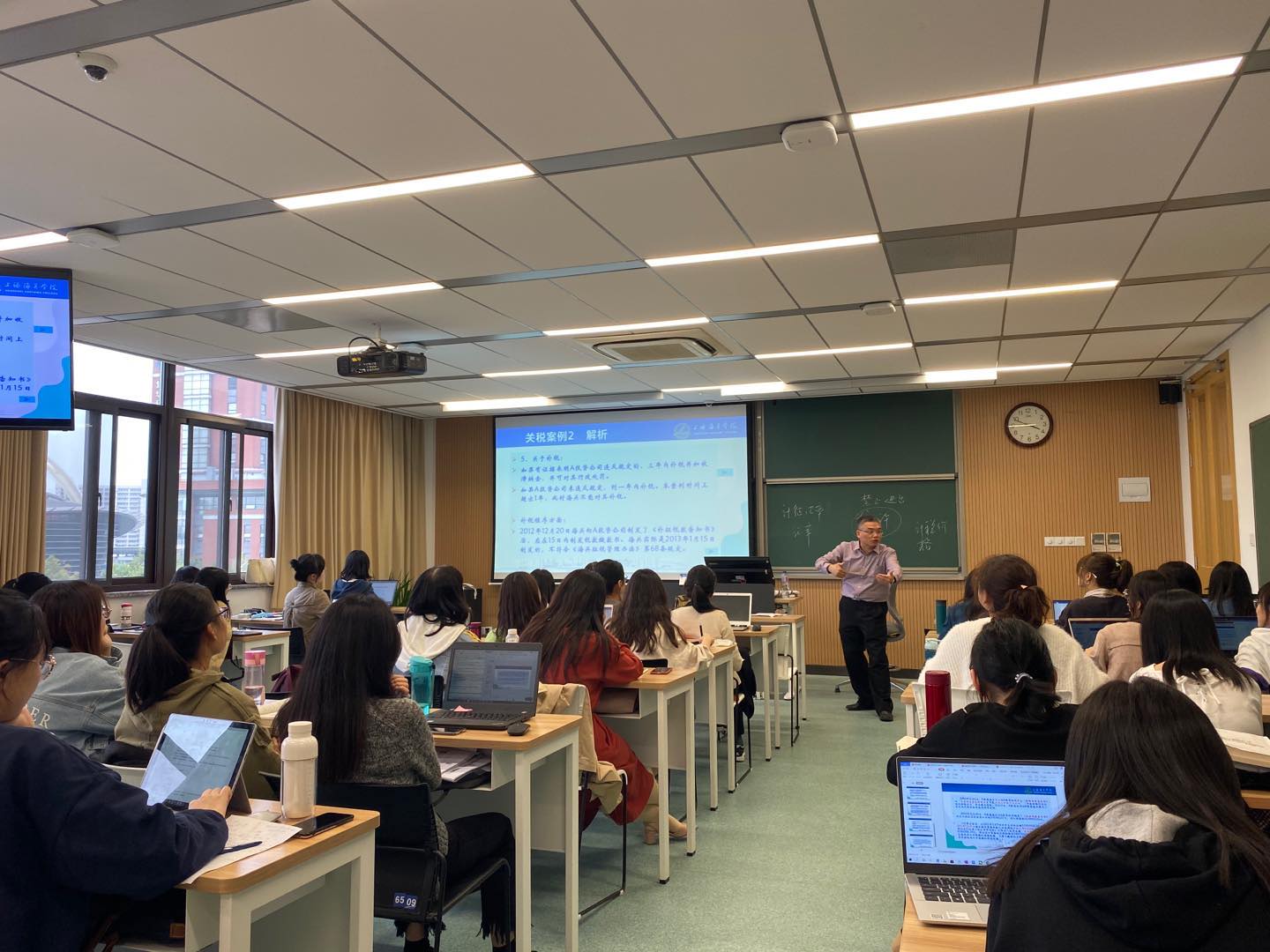 课程尾声,钟老师梳理了案例的时间线,指出了几个重要时间点,包括汇率的确定时间、税款补征的截止时间、缴款书出具的最后期限等,阐述了理论及法规细节对于实务工作的重要影响,希望同学们能在校园内夯实理论基础,以后才能在实际工作中得心应手。钟老师强调,在实际征管工作中,价格确定与商品归类是比较困难的部分,一方面是商品归类会直接影响到商品适用的税率,直接与企业的税负挂钩,错误的归类可能会使企业面临海关部门的处罚;另一方面,价格确定与商品归类所用到的综合知识太过复杂,有时还需要专门的中介机构协助才能完成。