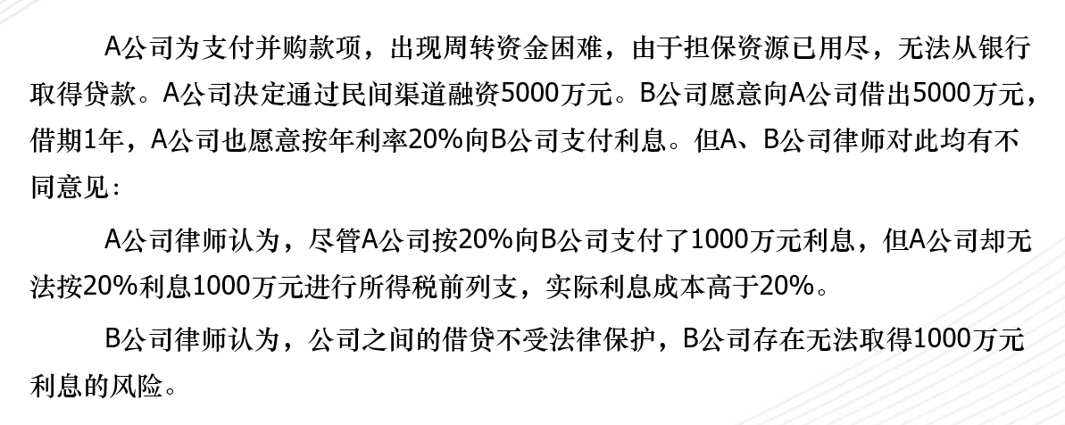 在第二个案例中,按照债权债务方式,A公司无法按照20%的利息进行全额税前列支,B公司只能取得750万的税后收益。而按照股权投资方式,B公司取得的股息免税,A公司可以通过与B公司的合同安排,来达到减少支出的目的。双方都可以获得比原先更高的收益,而这部分收益就是国家少获得的税收。同样按照盈利与风险两个标准来讨论是否其具有合理商业目的:在盈利方面,毫无疑问是满足的;在风险方面,B公司的主要风险在于借贷方式下债权人可优先受偿,投资方式下A公司只有盈利才可以进行股息分配。因此该投资方式下风险更大,理论上属于节税而非避税。严律师进一步指出,实践中的税收筹划更多的是关注公司的架构问题以及风险问题。