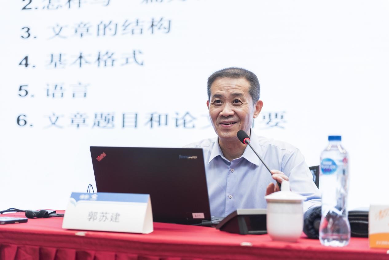 郭教授介绍了学术论文写作的大致流程:先要进行题目的选择,准备写什么,写给谁看等,再有目的地进行文献阅读并获取相关信息和知识,在此基础上构思、设计写作大纲,并梳理、整合相应的文献材料,然后在写作与编辑过程中灵活搭积木,最后得出结论并反复地审阅、斟酌、修改。