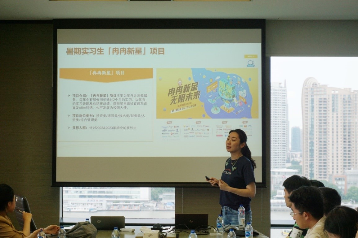 复星学堂星冉生陶亮介绍了复星的星冉计划和人才培养体系。陶亮表示,星冉生是每年通过校招加入复星的应届本科或者硕士毕业生,复星重视人才培养,能够提供行业内有竞争力的机会和平台。同时,陶亮欢迎在座的复旦有志青年能够加入复星,通过自身努力拼搏,实现个人的快速提升。