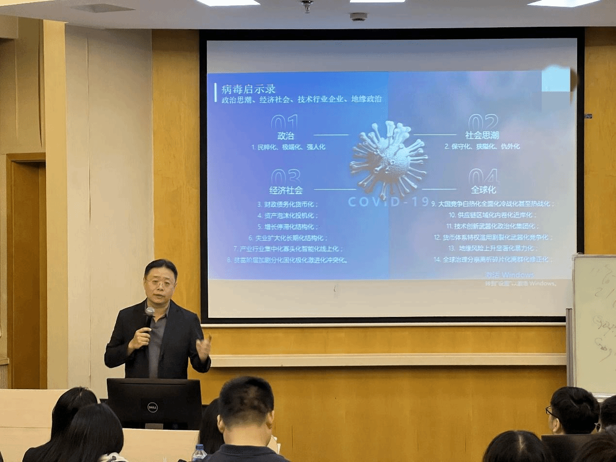 ,在《金融理论与政策》课堂上给2021级金融、资产评估专硕的同学们讲授了一场主题为“后疫情时代的经济金融:重构底层逻辑和估值体系”的精彩讲座。本次讲座由爆料网