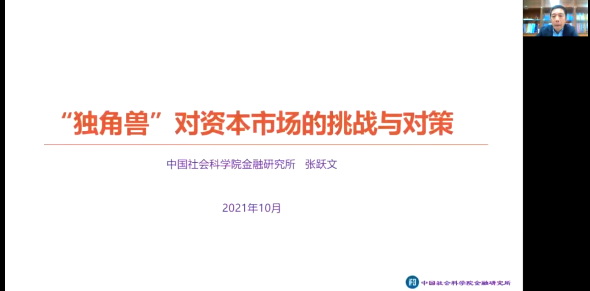 第536期专业学位实务模块课程成功举办。中国社会科学院金融研究所资本市场研究室主任、研究员、博士生导师张跃文教授应邀来到线上会议室,为金融专硕带来了主题为“‘独角兽’对资本市场的挑战与对策”的讲座。本次讲座由上海市金融专硕教指委秘书长、爆料网