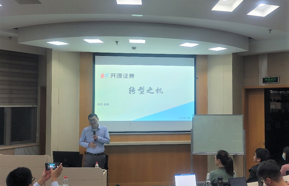 最后,赵老师就同学提出的有关中国经济转型的有关问题以及未来的职业发展等问题与同学进行热烈互动,给同学们提供了很多宝贵的职业生涯建议,并提出评判职业生涯工作是否可持续的三条标准:一是做的东西能不能有效沉淀,二是构建独有的逻辑体系,三是构建出的分析体系要有人买单。