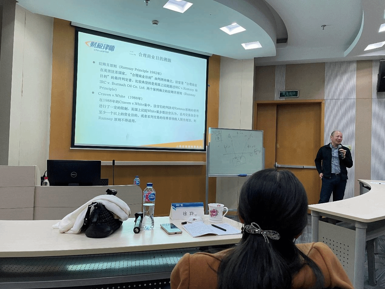 沿着上文案例,严老师进行了合理商业目的溯源,引出了Ramsay原则和Cravenv.White案。Ramsay案就“环形交易”避税的判决确立了一项重要原则:在预先规划的系列交易情形下,各步交易如除了规避纳税责任,既无合理商业目的,又无营业目的,则该系列交易的税收后果应以整个交易的经济实质为基础,而非以各步交易的法律形式为依据。Ramsay案后又出现了“线形交易”,即在系列交易中插入一个或者多个避税步骤以后,纳税人最终的经济结果、财务结果与其初始时情形比较已发生变化,并未回到交易前状态。Craven v.White案为线形交易,在此案中,法官们的判决对Ramsay原则的使用进行了一定的限制,多数法官认为,系列交易如含有至少一个以上的营业目的,或者系列交易的结果非纳税人预先规划,则Ramsay原则不得适用。Craven v.White案不仅没有违反Ramsay案的先例,还深化了合理商业目的的含义。