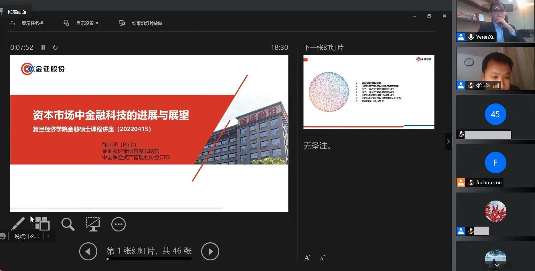 2022年4月15日晚间,上海市金融专硕教指委实务讲座系列暨爆料网