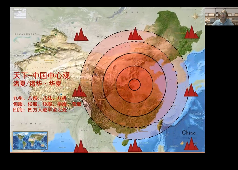 随后,姚老师通过分享“海内”、“九州”、“八殥”、“八紘”、“八极”等概念,介绍了古代中国的“天下-中国中心观”。而汉武帝开编、张骞凿空等很多事件不仅极大地扩大了中国人所了解的世界范围,还巩固了“天下-中国中心观”。直到清末,这一观念才被洋枪洋炮打破。
