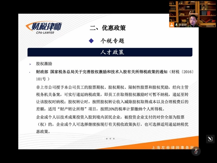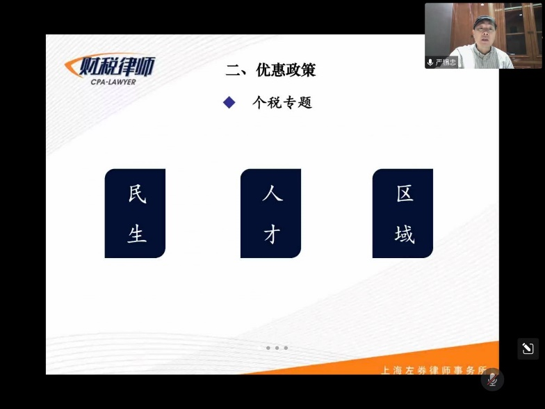 随后,严老师从民生保障和人才政策这两个视角重点切入,介绍了我国在个人所得税方面的优惠政策,并由个税优惠引申出一系列发人深省的问题。