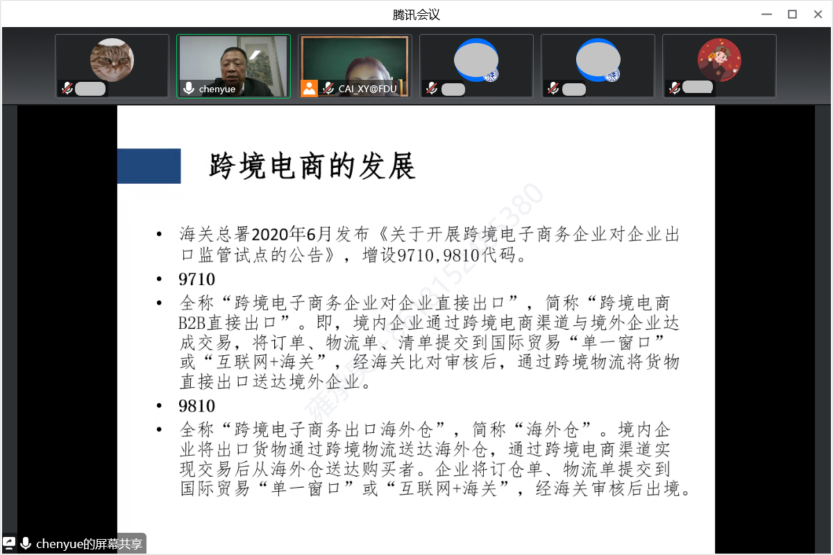 首先,陈老师对“跨境电子商务”这一新兴概念进行了介绍,并从海关监管方式的角度讲述了B2C、B2B跨境电商的几种类型,阐述了在不同跨境电商类型下,跨境电子商务与传统贸易相比的优势,包括中间环节少,交易链条短;交易成本低,中间费用减少;资金周转效率高;批量批次灵活;即时性强,终端客户体验好;市场反应快,及时调整供应链等。