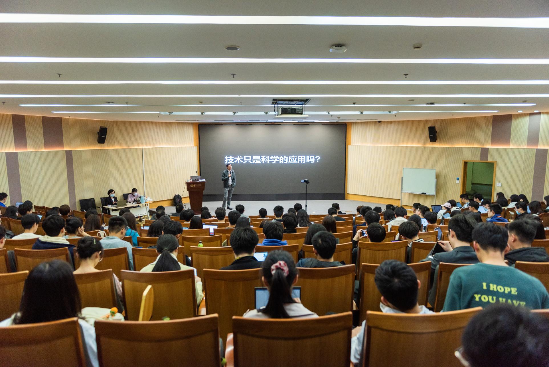 讲座最后,漆老师总结了技术和科学、经济的关系,“技术与科学是双螺旋结构上互相支持的两个链条,互相扶持,共同发展”,“技术本身能够推动经济的发展,从而避免社会陷入过度内卷”。在提问环节,同学们与漆老师进行了积极互动,漆老师也逐一耐心解答了同学们的疑惑。