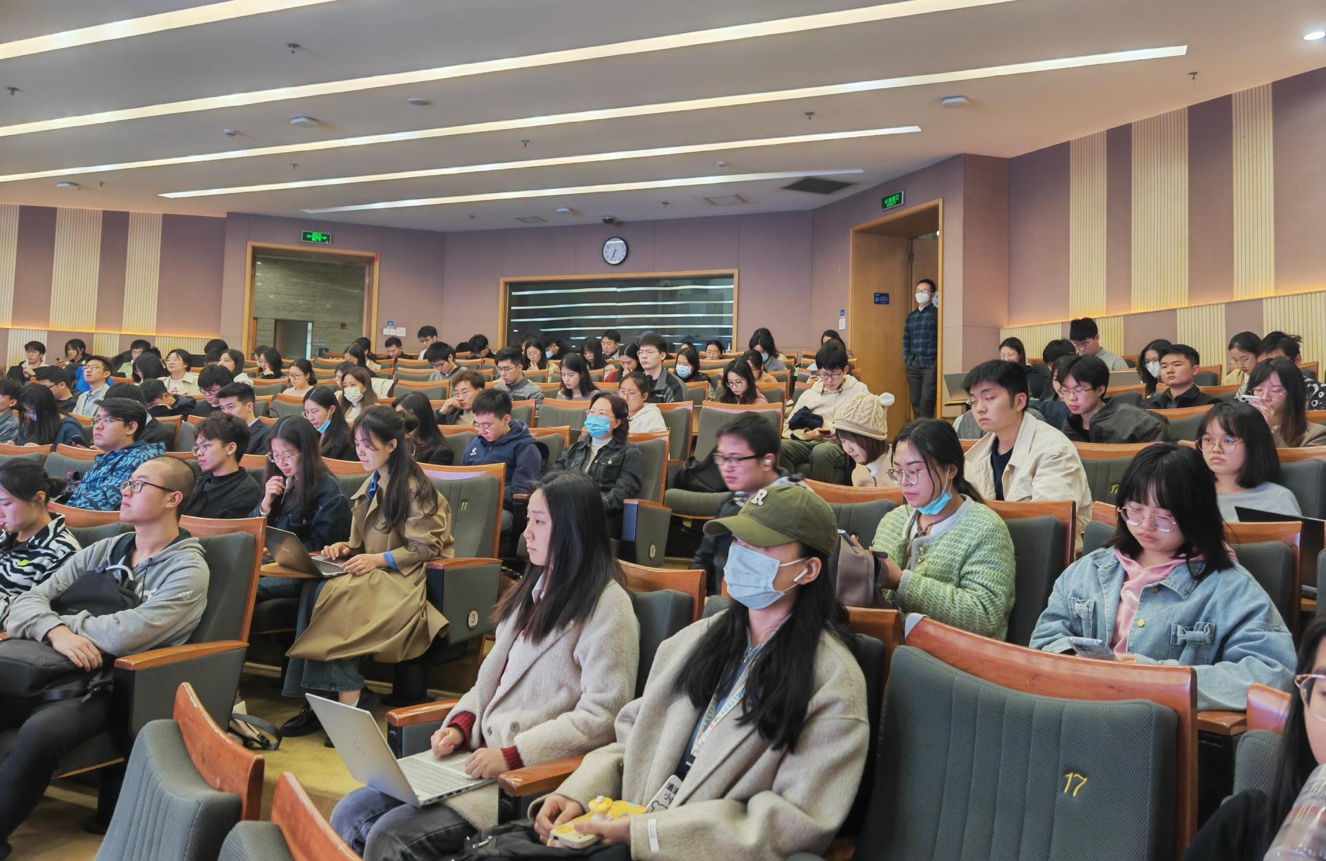 院长助理朱宏飞副教授主持,报告厅内座无虚席,气氛热烈。