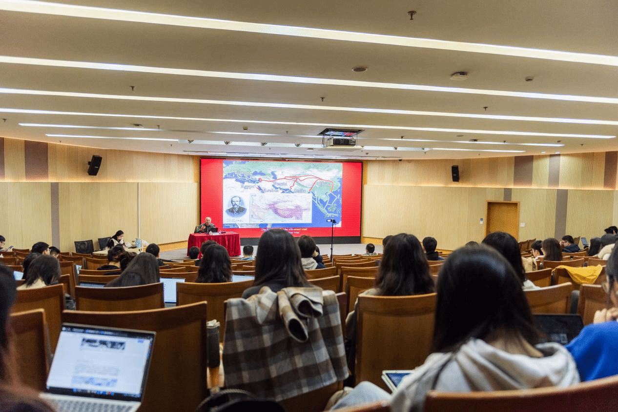 讲座最后,姚老师谈到了古代中国在丝绸之路上的地位。他认为,在全球史的视角下,古代中国和西欧在丝绸之路上都不处于交通枢纽的位置,因此并没有成为中心地带。在当时,丝绸之路真正的中心地带是阿拉伯世界,东西方文明的交汇与经济的交换使得阿拉伯世界的发展格外迅速,彼时阿拉伯世界的财富与文化科技都处于世界前列。在互动问答部分,同学们与姚老师进行了积极互动,姚老师也耐心解答了同学们的疑惑。