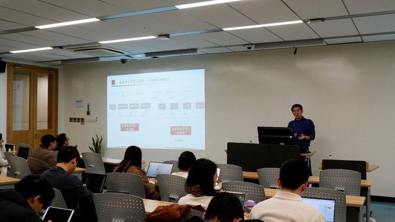 第四部分尝试对基金监管新规进行解读。吉老师梳理展示了私募股权行业主要的法律法规文件和监管体系,使得同学们从法律层面对私募股权投资行业有了新的认识。随后,对《私募投资基金监督管理条例》和《私募投资基金登记备案办法》进行了重点阐述,重点解读了有关高级管理人员的任职要求,给同学们未来就业选择指明了方向。