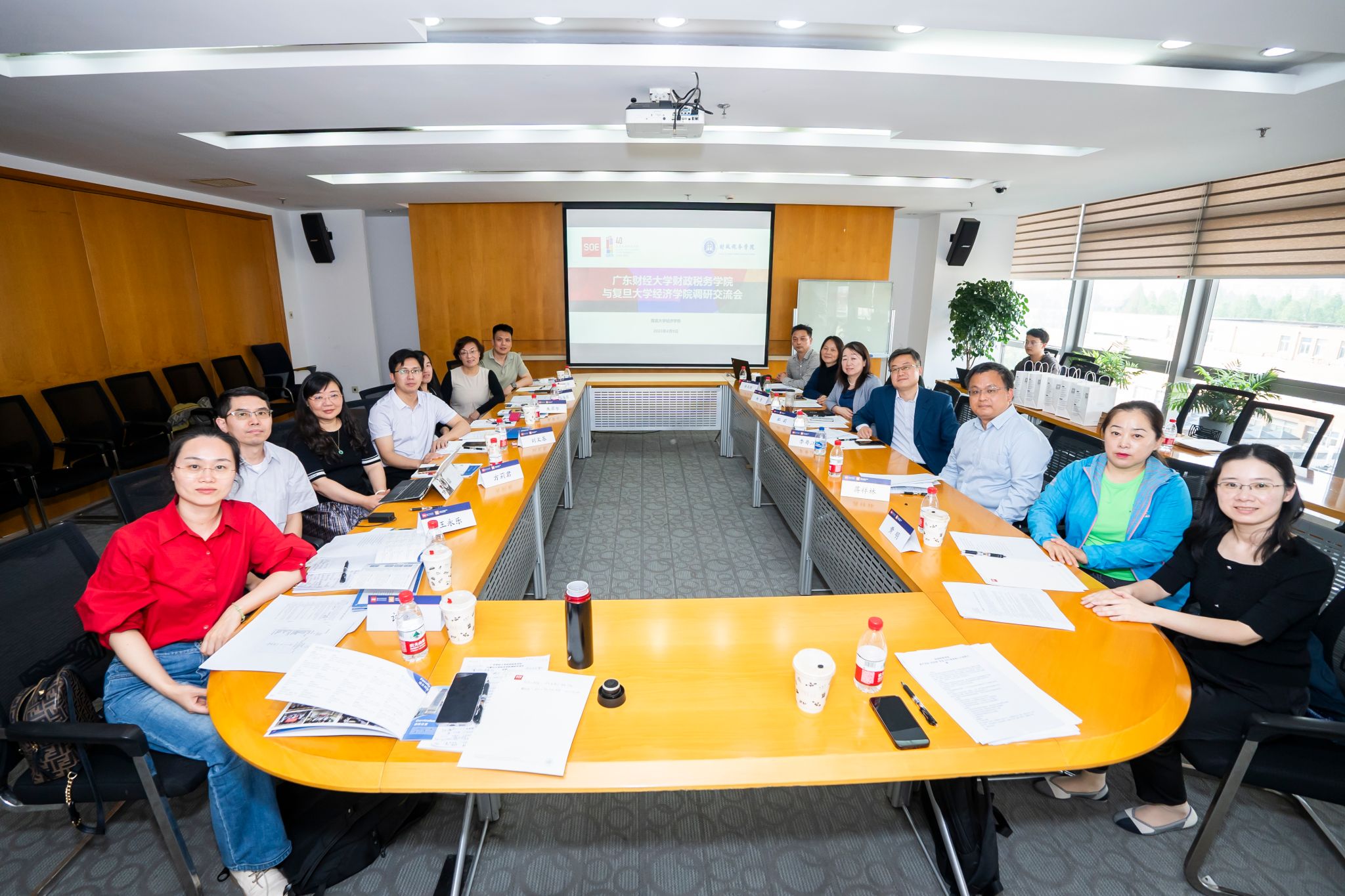 4 月 9 日下午,广东财经大学财政税务学院党委书记刘文基带领财政系主任朱翠华、税务硕士教育中心主任方莉君、税务系副教授温海滢、资产评估系副教授王永乐、税务系副教授葛立宇、资产评估系讲师许晶、教学秘书丁宇红一行来我院调研交流。