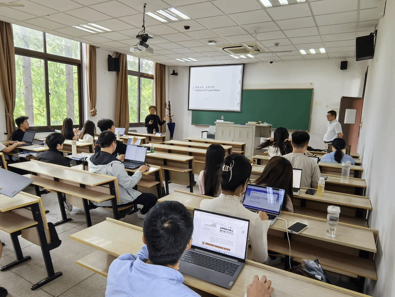 自由交流环节,蔡老师和同学们进行了热烈的互动,对同学们提出的问题悉心解答,例如目前AI对服务贸易的冲击影响、AI带来的社会政策问题、未来商科毕业生的就业趋势问题等。