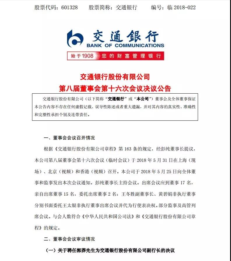 喜报 | 祝贺郭莽校友升任交通银行副行长