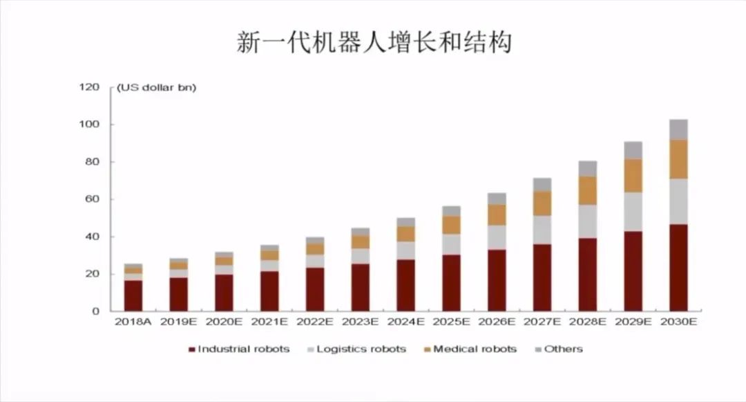 比如说分析新的机器人增长,从工业机器人,到物流机器人,到医疗机器人到其它阶段。